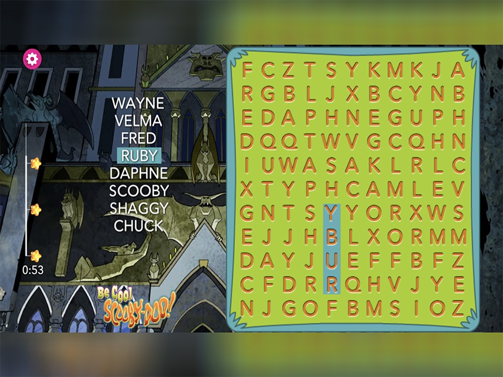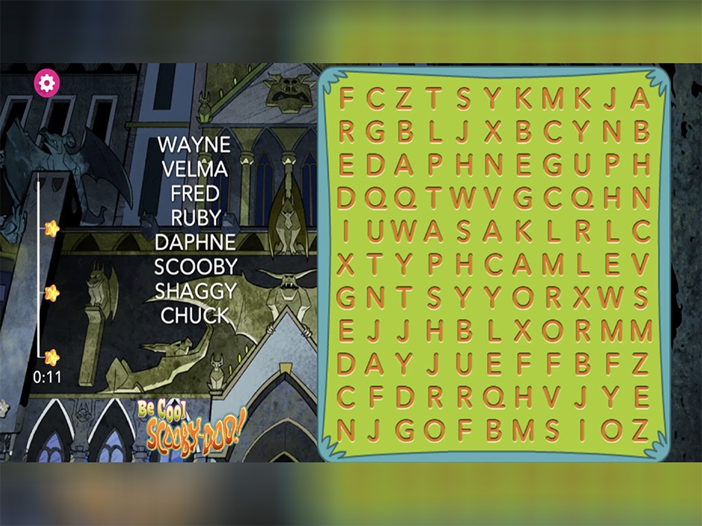 Únete a Scooby mientras busca palabras ocultas en una espeluznante sopa de letras. Encuentra todas las palabras para resolver el misterio.