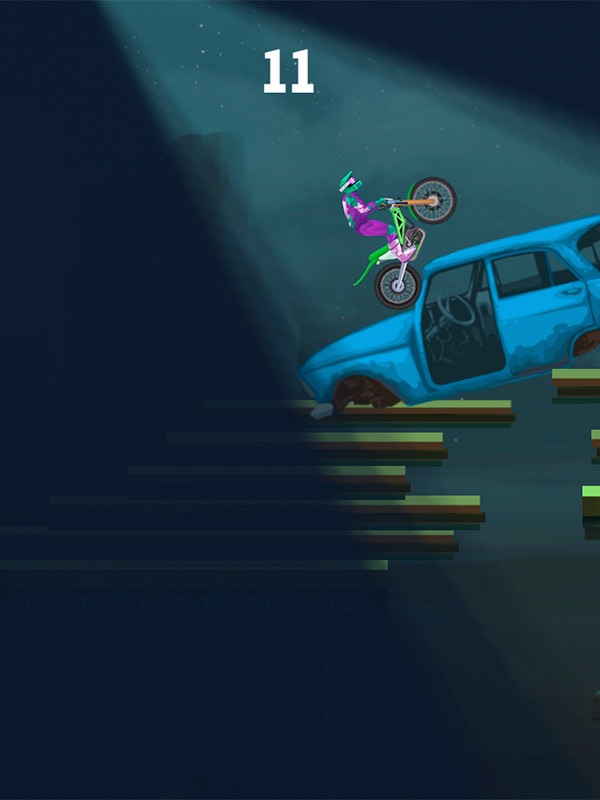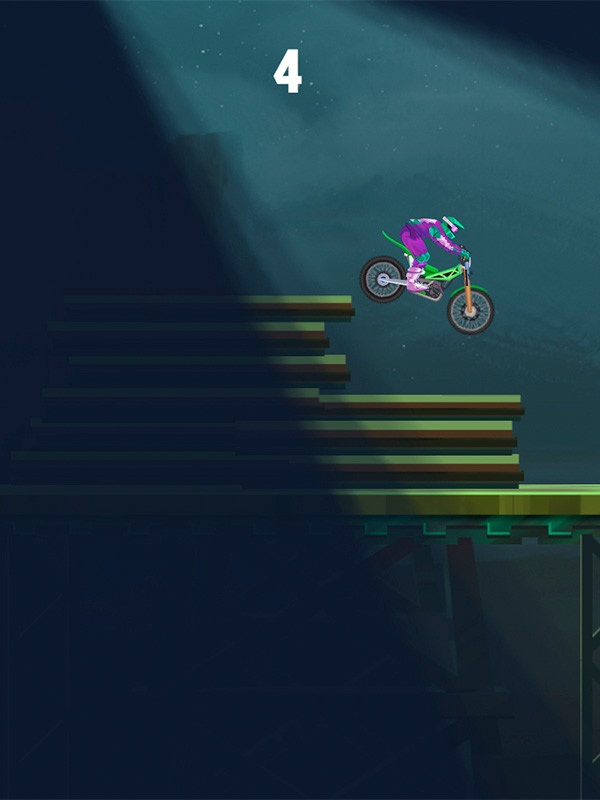Supera todos los obstáculos y no dejes que el ciclista se golpee la cabeza o se caiga. El equilibrio es clave: inclínate hacia atrás o hacia adelante para conseguir el mejor agarre.