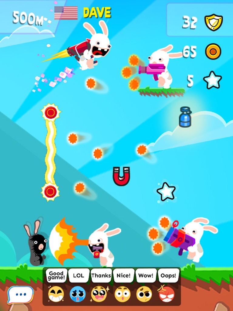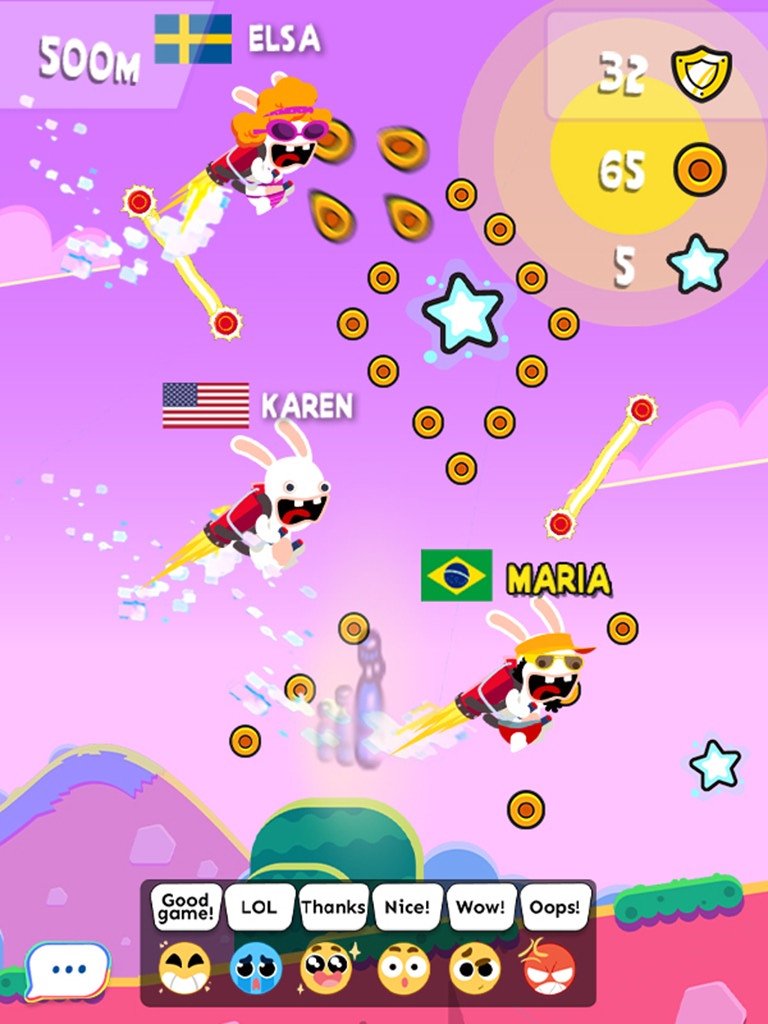 ¡Vuela todo lo lejos que puedas y consigue estrellas antes que el resto de Rabbids traviesos! Disfrázate y prepara tu mochila propulsora, ¡la carrera ha empezado!