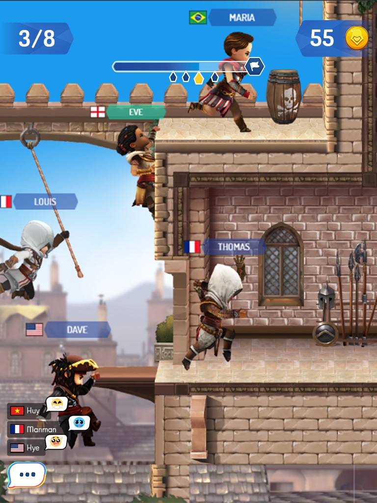 Selecciona a tu Assassin de confianza y entra en el Animus con otros 7 jugadores. ¡Supera los peligros y llega al punto de sincronización antes que el resto!