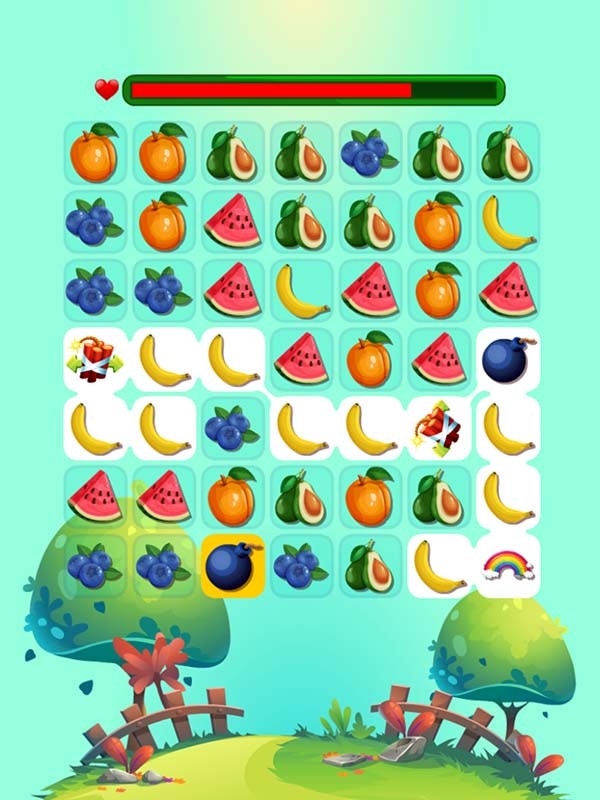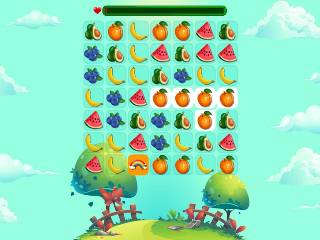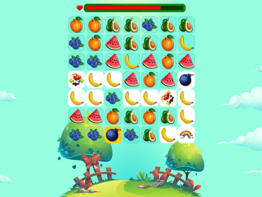 Divertido y relajante juego de puzzle, en el que tienes que encontrar cadenas de frutas del mismo color en el tablero. Simplemente toca el icono de una fruta y mueve el dedo por la pantalla para seleccionar más del mismo color. Te esperan bonificaciones y potenciadores por conectar las cadenas más largas. El juego termina cuando se agota la barra de energía de la parte superior de la pantalla (puedes recargarla con potenciadores mientras juegas). ¡Diviértete!